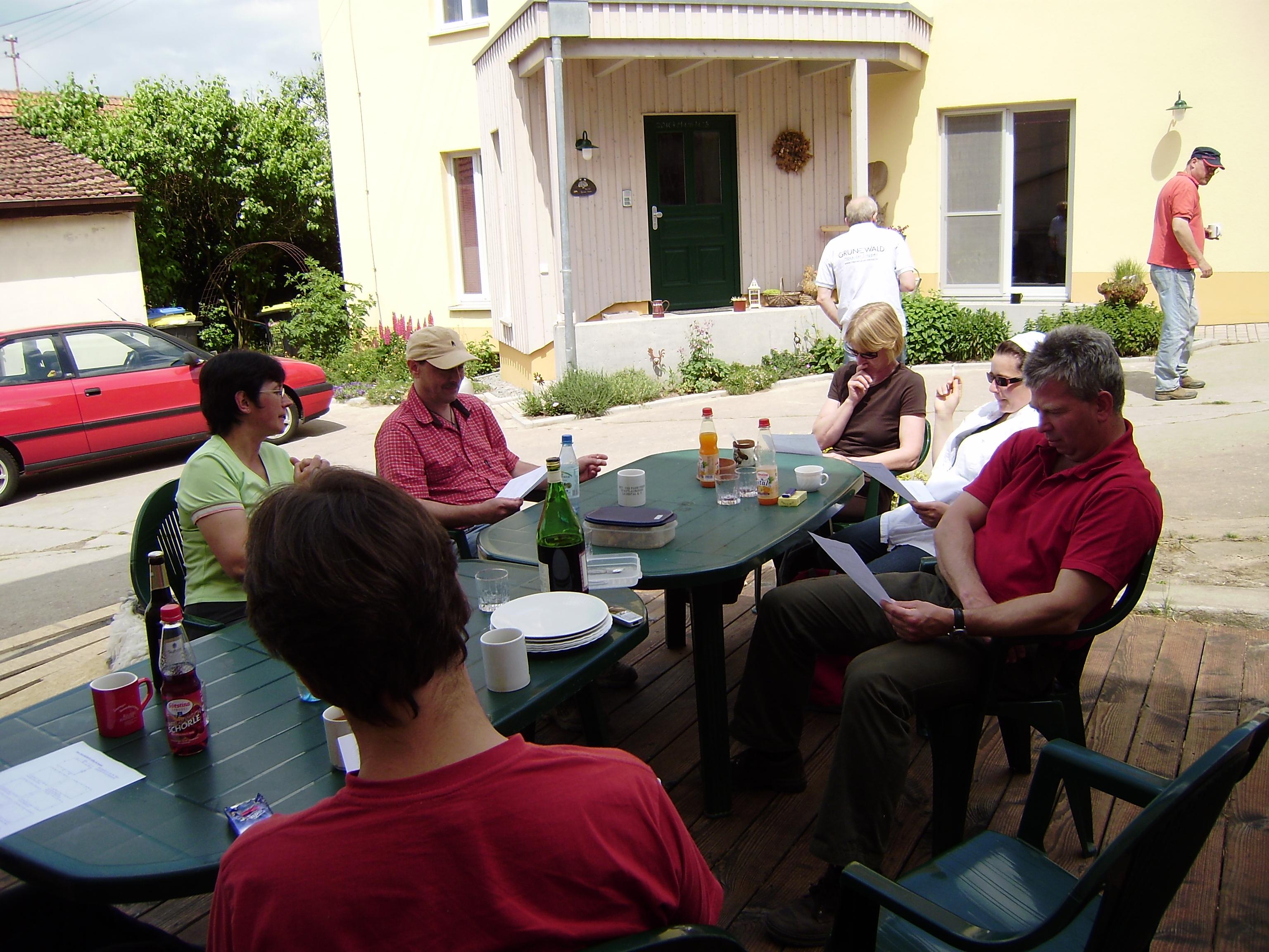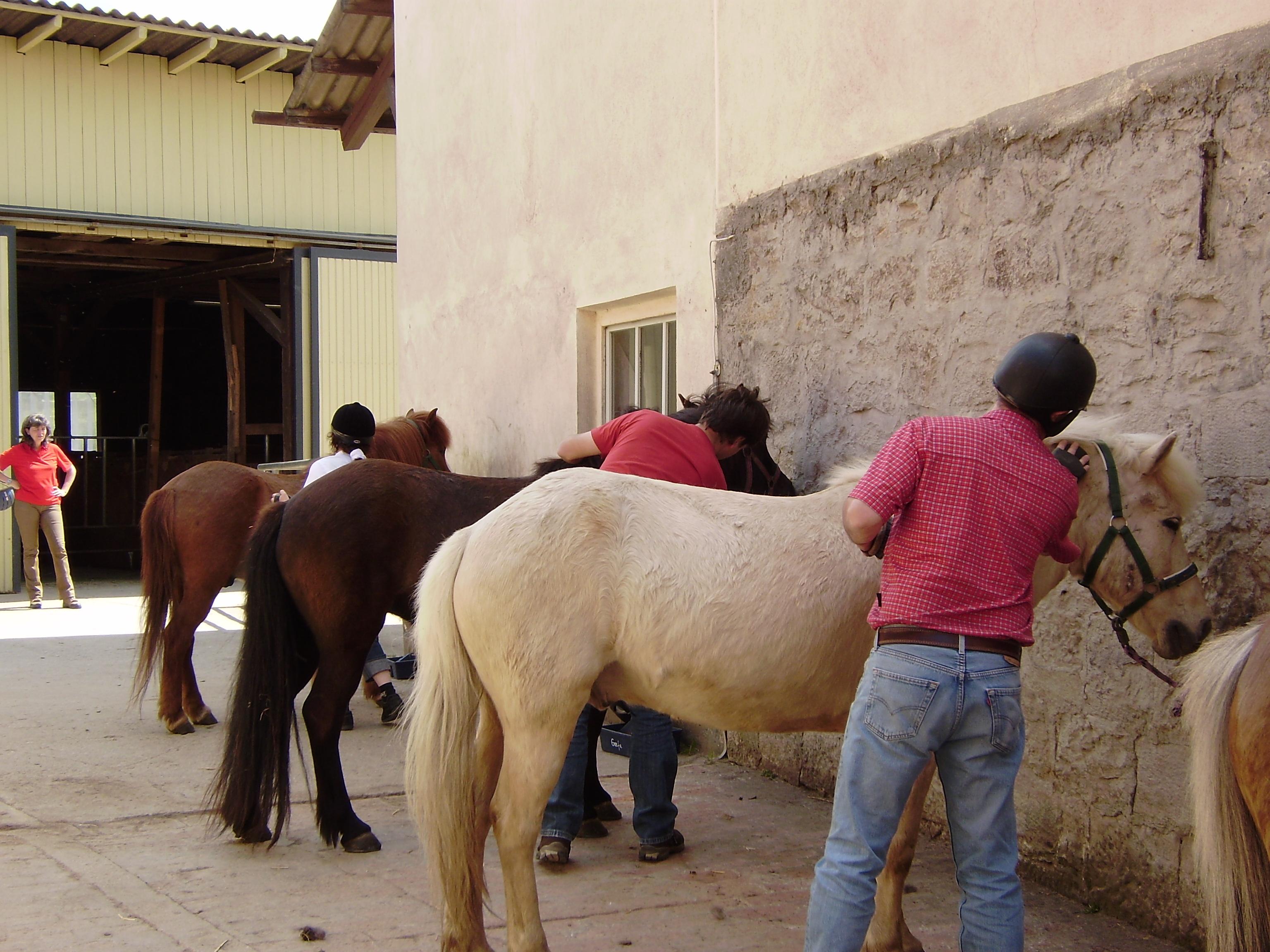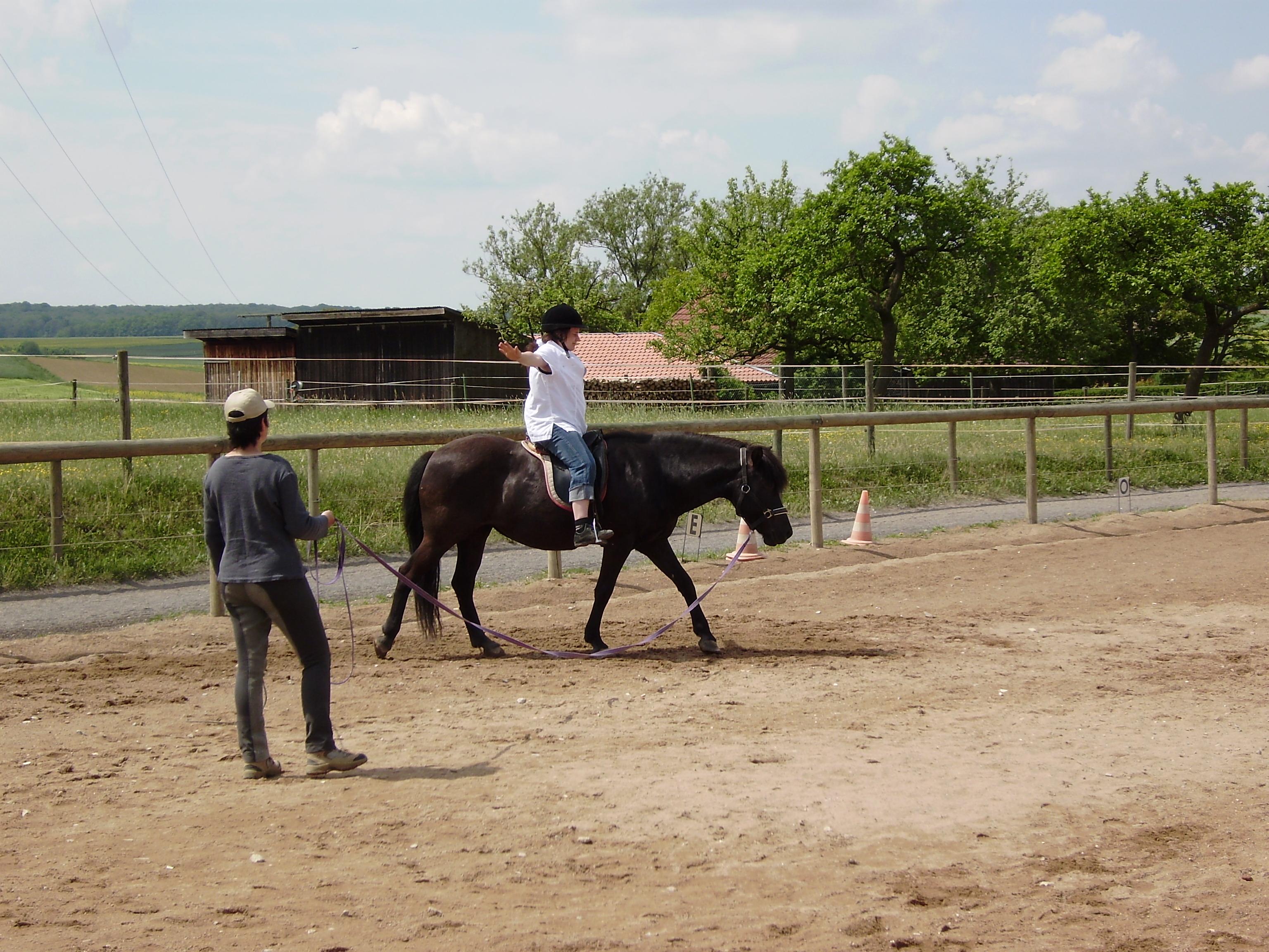 Er war nicht nur vom Wetter her bombastisch....sondern auch von den Teilnehmern. Wir konnten unsere gesteckten Ziele problemlos erreichen, da alle so motiviert waren.  Am Anfang steht immer die graue Theorie, die man sich allerdings mit Kaffee und Kuchen versüßen kann. .jpg) Wohin mit dem ganzen Leder?  Vorbereitung zur ersten Reitstunde .jpg) Longe ist zu Beginn unerlässlich  Vorbereitung zur ersten Reitstunde  Während die erste Gruppe reitet, trainiert die zweite fleissig am Holzpferd weiter .jpg) |