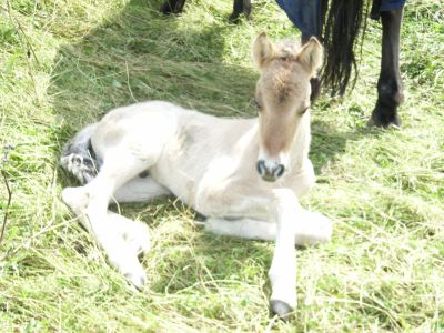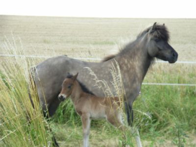 Nun sind sie nicht mehr Namenlos......unsere beiden Hengstfohlen. .jpg) Am 17. Juni 2007 wurde als echtes Sonntagskind Myllas Sohn Fengur vom Ungerhof (Geschenk) geboren. Mutter und Sohn haben alles sehr gut überstanden. Obwohl es für uns eine echte Überraschung war, denn der Kleine kam 10 Tage zu früh. .jpg) Interessant finden wir, dass gleich am nächsten Tag, dem 18. Juni 2007 Glannas Sohn Stormur vom Ungerhof (Sturm) geboren wurde, ebenfalls zu früh. .jpg) Wir durften dabei sein, als Glanna um 22.00 Uhr, bei heranziehendem Gewitter, ihr Fohlen auf der Koppel zur Welt brachte. Der Kleine konnte dann auch das erste heftige Gewitter miterleben. Nun spielen und toben die Beiden mit großer Freude miteinander. Wir warten mit Spannung auf Svalas Fohlen, wahrscheinlich dauert es nicht mehr lange..jpg) |